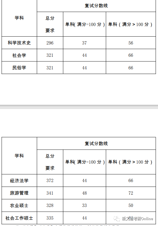 招生專業及復試分數線