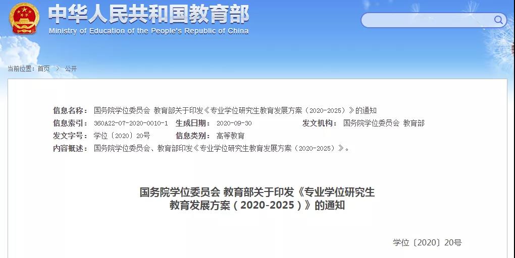 爭取到2025年,以國家重大戰(zhàn)略、關(guān)鍵領(lǐng)域和社會重大需求為重點(diǎn),增設(shè)一批碩士、博士專業(yè)學(xué)位類別,將碩士專業(yè)學(xué)位研究生招生規(guī)模擴(kuò)大到碩士研究生招生總規(guī)模的三分之二左右。”