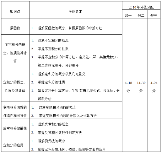 本章節重點是要學會不定積分和定積分的計算,熟練背誦基本積分表,在此基礎上,要會用學會第一類和第二類換元積分法,第一類換元法主要是湊微分法,第二類換元法主要用變量代換,包含三角函數代換、倒代換、無理式代換等,還要學會分部積分法,能運用合適的方法計算不定積分。定積分主要理解其定義及積分上限函數的性質與求導,此部分內容綜合性較強,常與極限、級數以及微分方程綜合考查,所以同學們要多花時間,總結常考題型,多練習,做到有的放矢。