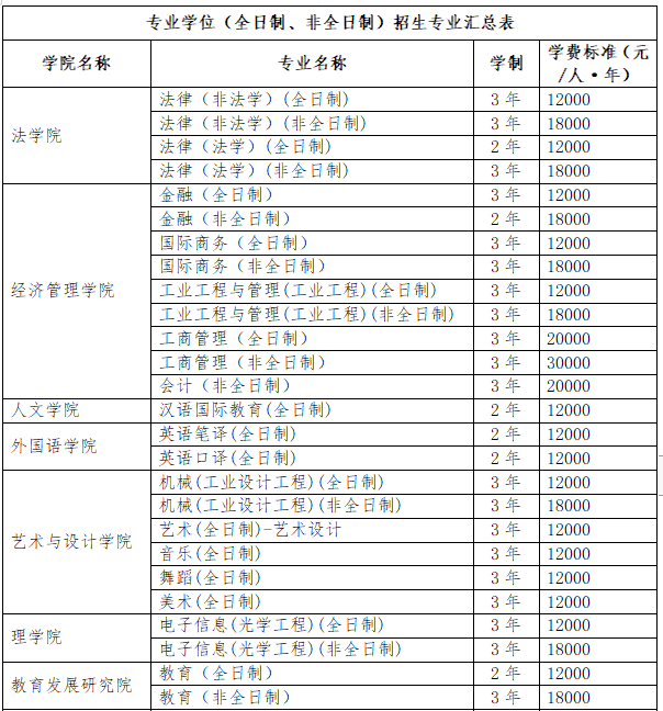根據(jù)國家有關規(guī)定,我校全日制學術學位碩士研究生的學費標準為:8000元/人·年;全日制、非全日制專業(yè)學位碩士研究生的學費標準詳見下表,最終學費以江西省物價部門核準的學費標準為準: