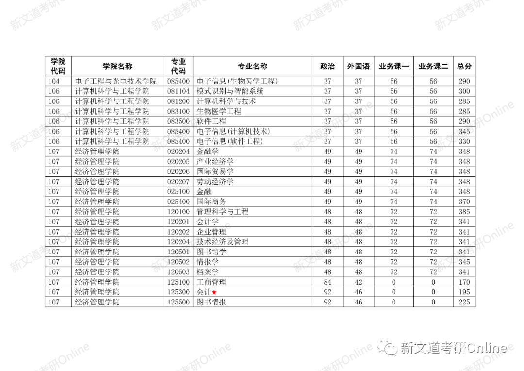 招生專業及復試分數線