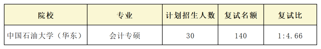 同樣是會計專碩,同樣是至少連續兩年高淘汰率的還有中國石油大學(華東),今年計劃統招30人、復試進140人;去年統招27人,復試進248人!