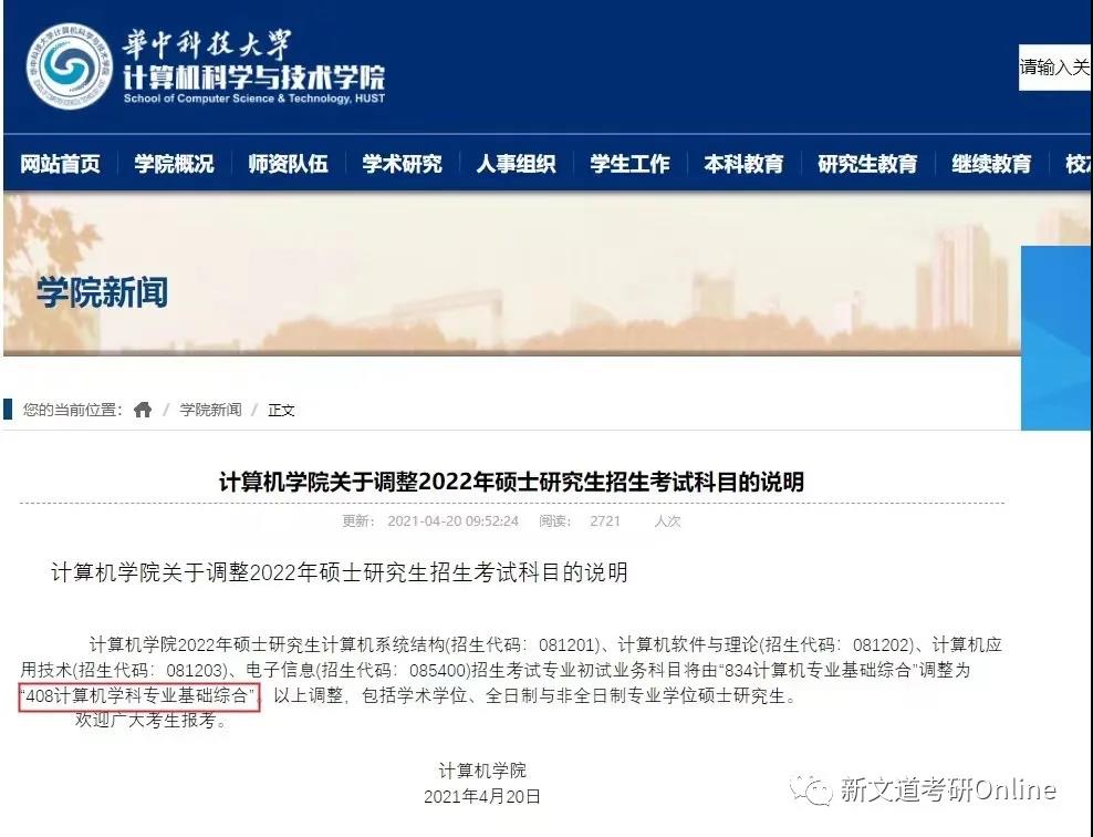 計算機系統結構(081201)、計算機軟件與理論(081202)、計算機應用技術(081203)、電子信息(085400)專業初試業務科目由“834計算機專業基礎綜合”調整為“408計算機學科專業基礎綜合”。