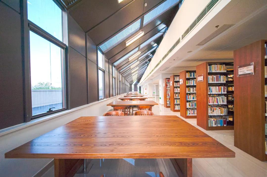 圖書館于2009年6月落成啟用,建筑面積約2.1萬平方米,設(shè)計(jì)概念取意自中國的線裝書,外部觀感造型體現(xiàn)了中國線裝書書盒的雅致結(jié)構(gòu),內(nèi)涵空間中則滲露出中國傳統(tǒng)書院園林空間的精神理念。