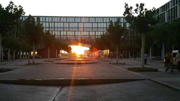 圖書館處于天大新校區(qū)的中心位置,主體平面呈規(guī)整長方形,內(nèi)側(cè)為中心庭院。建筑主體重心與校園東西軸線相重合,周邊有公共教學(xué)區(qū)環(huán)繞,是各個(gè)景觀軸線交匯處。圖書館總體借鑒中國傳統(tǒng)建筑的“庭院”為中心的空間模式,營造一個(gè)具有現(xiàn)代校園精神的公共性、開放性的文化場所。