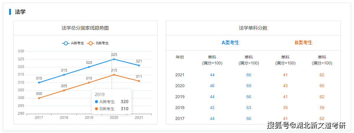 21年中國政法大學經濟法學和社會法學復試分數線為380,武漢大學法學院民商法學最低376最高405。